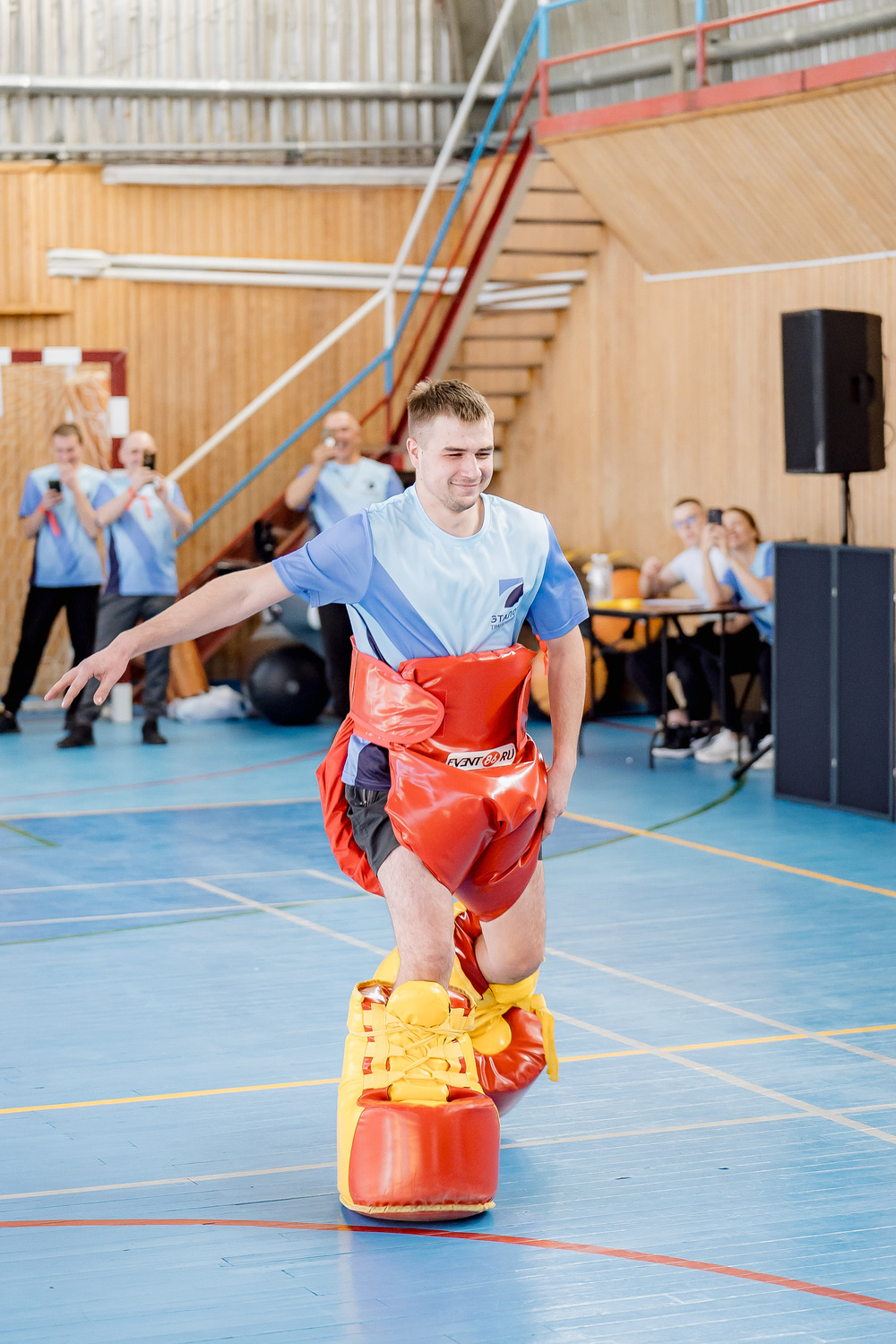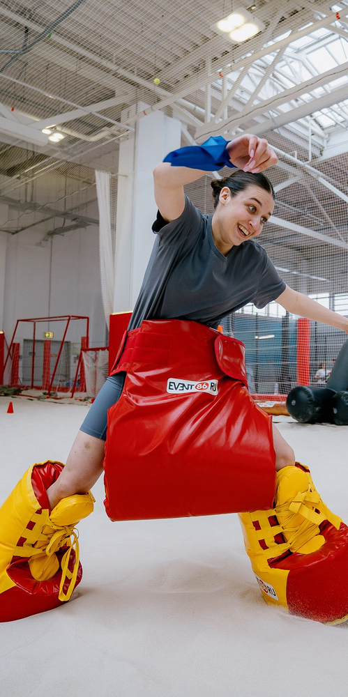 Когда нужно быстро вовлечь участников, раскачать публику и создать запоминающийся момент на мероприятии, этот аттракцион работает без объяснений и сложных правил. Большой объём памперса ограничивает движения и сбивает привычную координацию, превращая обычный бег в комичное испытание на баланс и скорость.